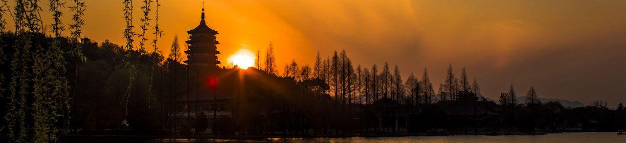 Skip to content Bright mesmerizing sun setting over the West Lake, Hangzhou, China